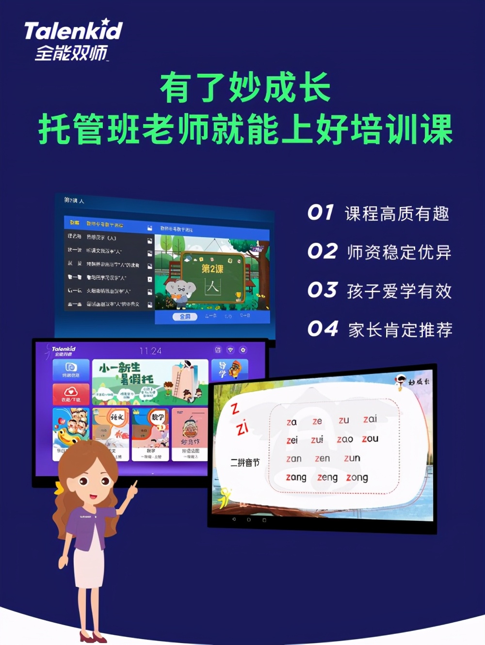 “全能双师课后辅导云平台主要为小学生提供同步辅导、考前冲刺和假期衔接课程,平台上有海量的教学资源,可以帮助老师轻松备课和教学。”全能双师课后辅导教学负责人朱妮娅介绍,目前针对幼小衔接和小学生提供课程的全能双师平台受到了机构老师的青睐,不少老师表示通过平台可以自查和规范自己的教学内容,还能同步学习,提升自己的教学技能。