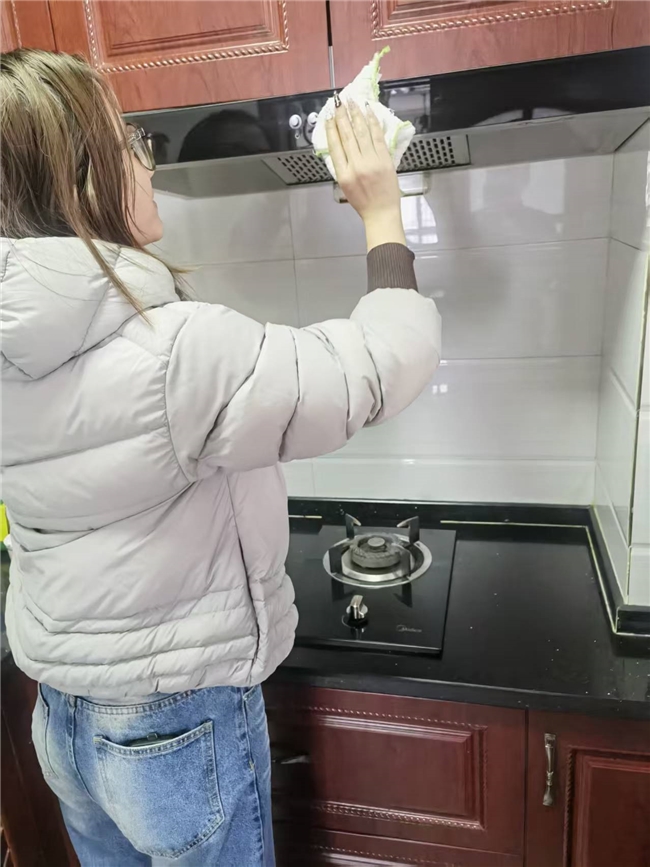 活动伊始,实践队员们按照陕西迎灶神的传统习俗,对社区居民家中的厨房进行了彻底清洁。大家分工协作,清洗锅碗瓢盆、擦拭抽油烟机和灶台,将厨房打扫得窗明几净。这一环节不仅是对居住环境的整理,更蕴含着“除旧秽,迎新春”的美好寓意,象征着以洁净的面貌迎接灶神的到来,也为新一年的生活扫除晦气、迎来好运。